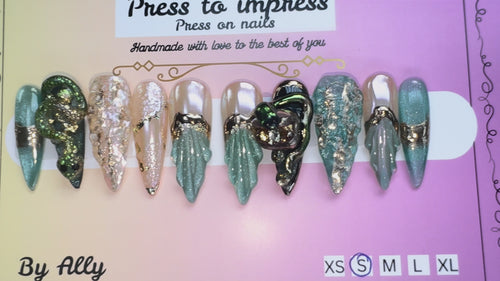 ✨ Emerald Galaxy Chrome Nails